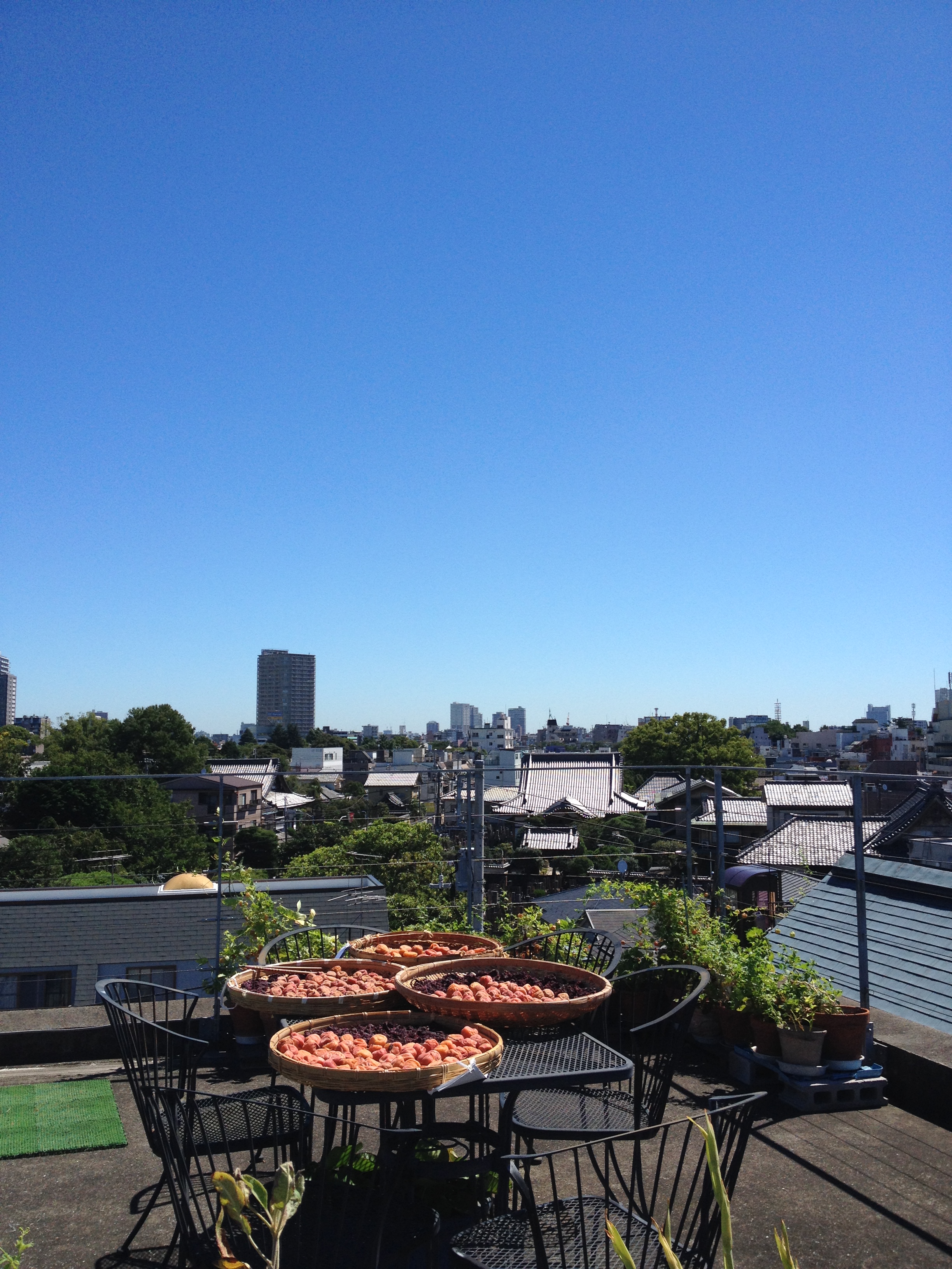Tsuyu (the rainy season) is over in Tokyo. It’s a perfect day for drying plums for umeboshi.