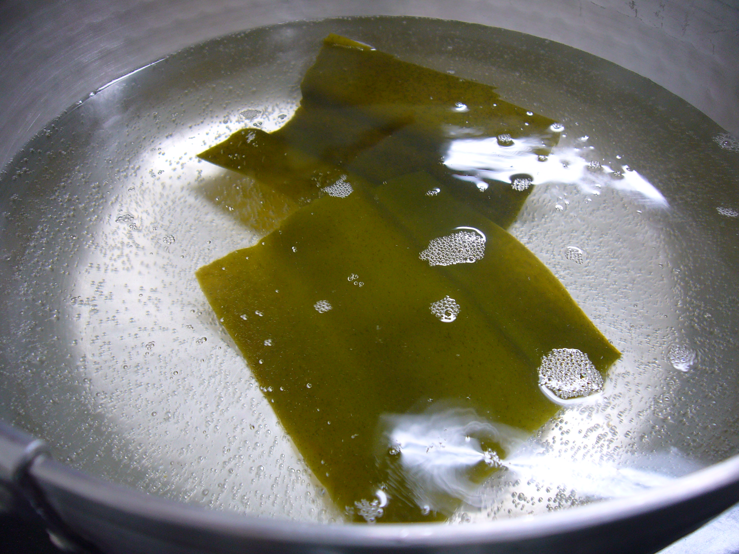 ① Pour the water into a pot, add the konbu, and set aside for 1 hour.