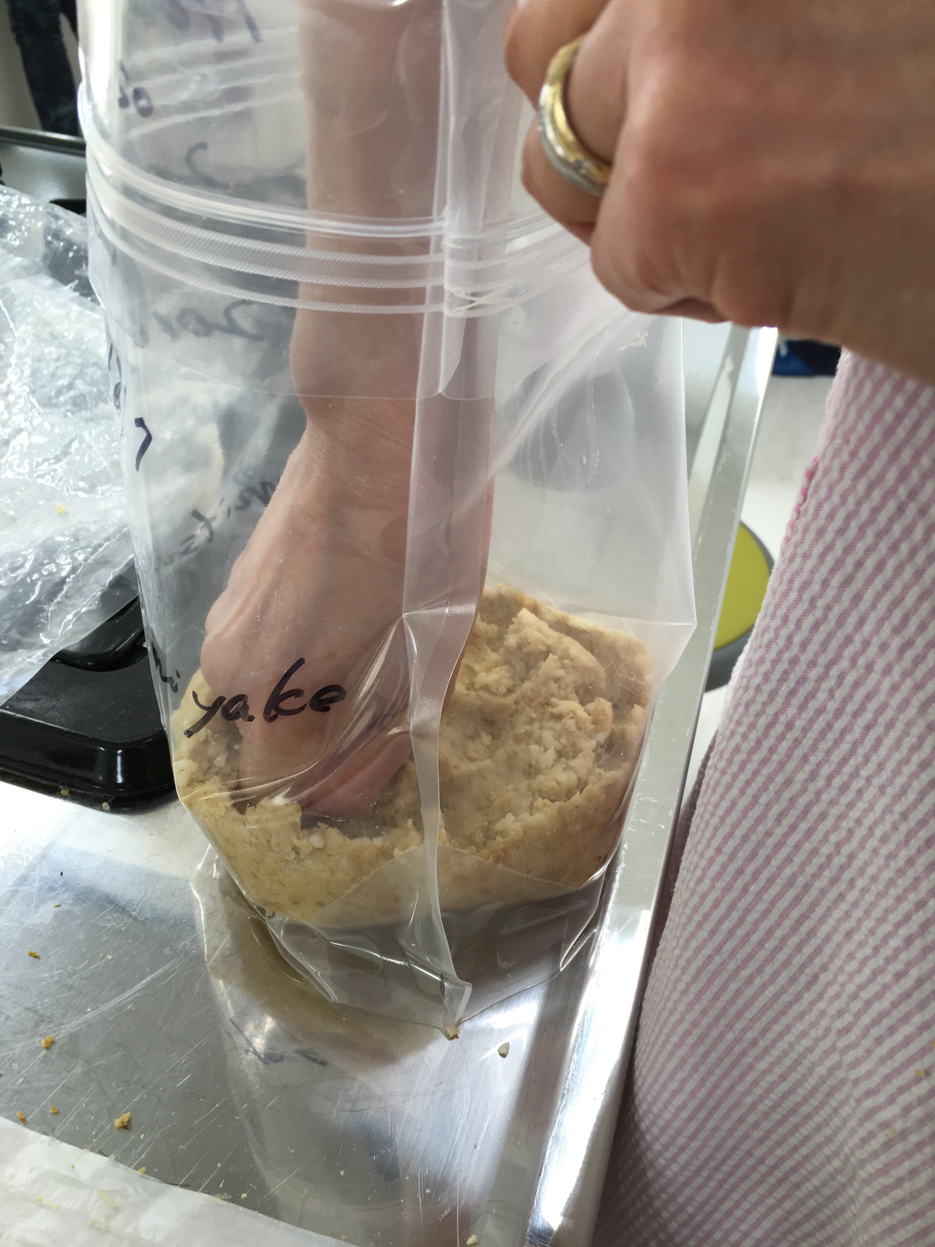 6. Once you have formed all of the paste into balls, begin stuffing the balls into the Lamizip pouch. Press the balls in (Yes, this will cause the balls the break down) tightly to make sure there are no air pockets in the pouch. When you get all of the paste into the pouch, level off the surface of the paste, press all of the air out of the pouch and then seal the pouch.