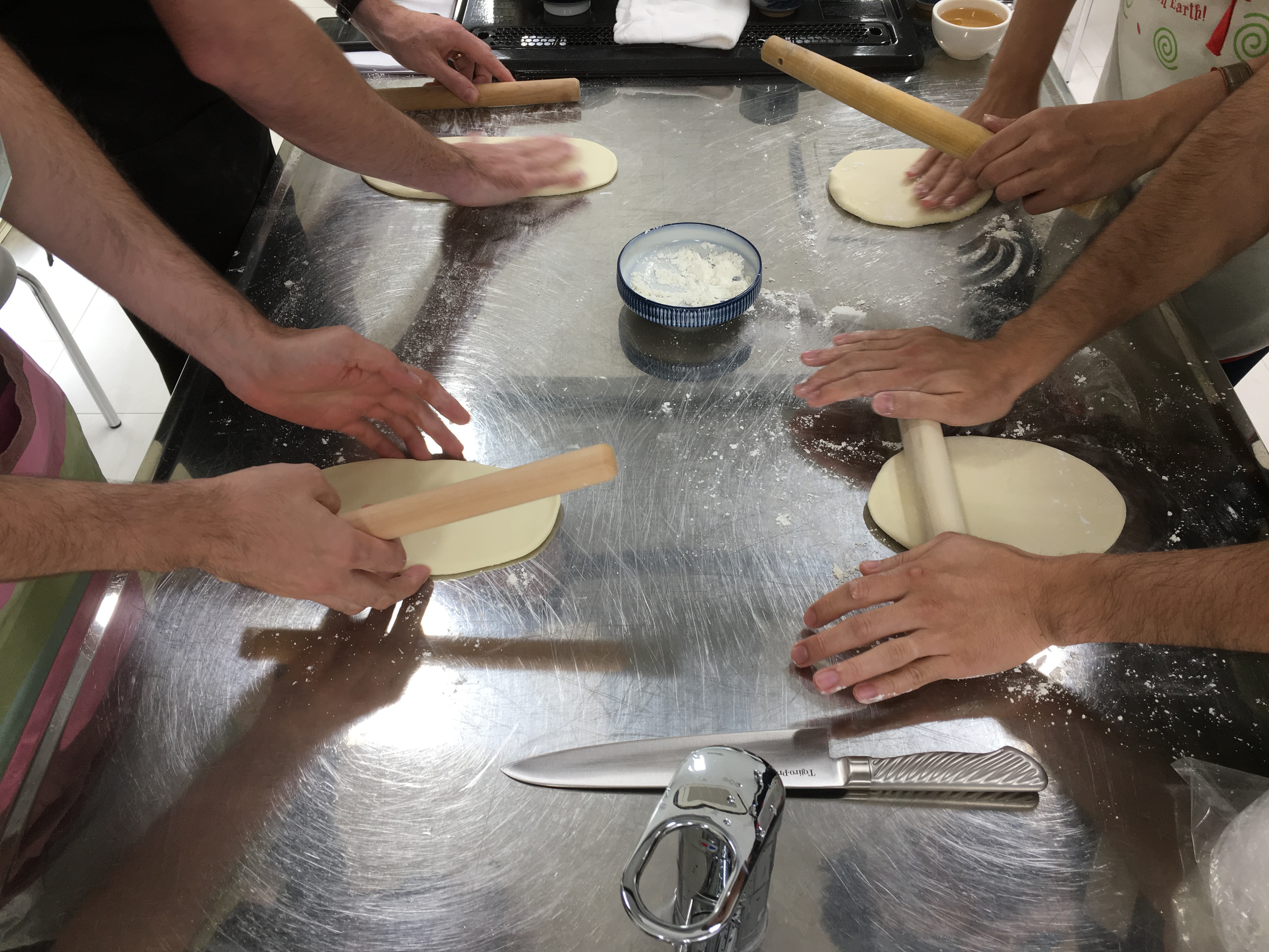 5. After the dough has rested, knead it again until it feels like your earlobe when you squeeze it. You can use your hands to knead the dough, but you can also cover the dough with a sheet of plastic and use your feet. When the dough has reached the correct texture, put it back into the plastic bag and let it rest for another 15 minutes.